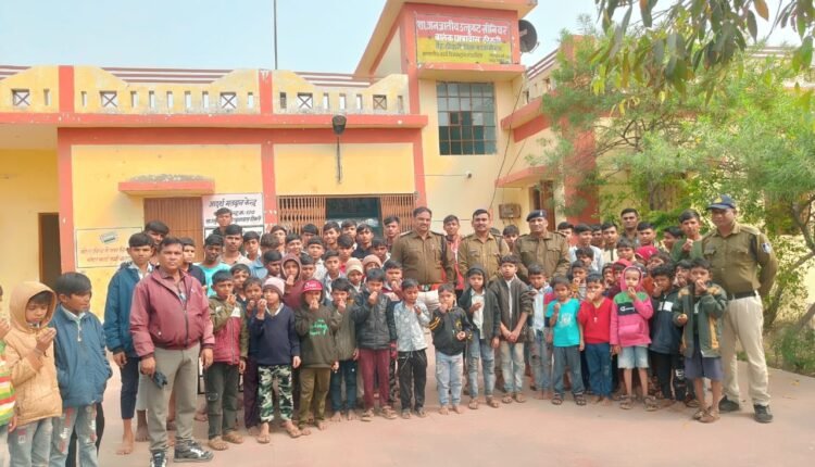 बलकवाड़ा पुलिस ने जनजातीय छात्रावास पर बच्चों को वितरण किए तिल्ली के लड्डू