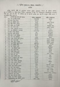 पुलिस मुख्यालय भोपाल से जारी हुई आरक्षको की ट्रांसफर सूची