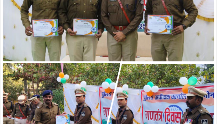 26 जनवरी गणतंत्र दिवस का खरगोन में विशेष समारोह का आयोजन हुआ जहां खरगोन पुलिस अधीक्षक धर्मराज मीना द्वारा जिले के पुलिस थानों,चौकियों में पदस्थ स्टाफ को उत्कृष्ठ कार्य करने हेतु प्रमाण पत्र देकर सम्मानित किया गया,जिसके तहत पुलिस चौकी खलटांका से चौकी प्रभारी राजेन्द्र अवास्या, सहायक उपनिरीक्षक अशोक नैय्यर, आरक्षक नीरज यादव को चौकी क्षेत्र में अवैध गतिविधियों गौवंश,शराब,गांजे की तस्करी,जुआ,सट्टा पर लगातार कार्यवाही करने एवं नर्मदा जी के पुलिया पर सुसाईड करने वालों को बचाने मैं उत्कृष्ट कार्य करने पर प्रमाण पत्र देकर सम्मान पत्र देकर उनका उत्साहवर्धन किया गया।