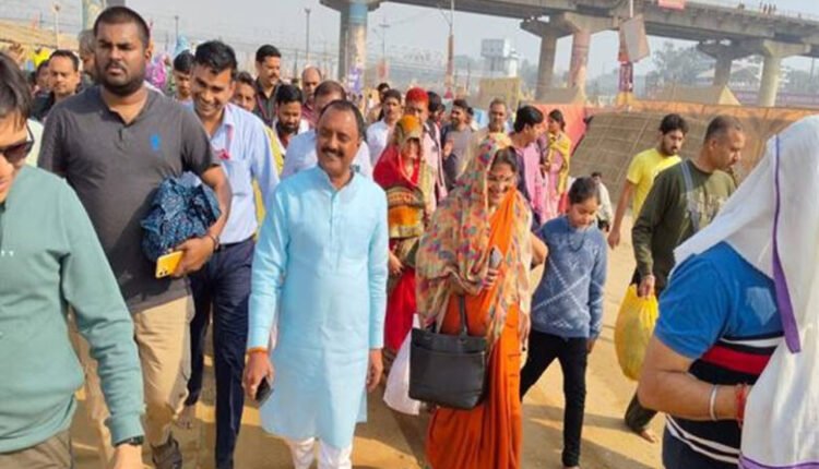 मंत्री राकेश शुक्ला ने रविवार को सपरिवार प्रयागराज के संगम में कुंभ स्नान किया