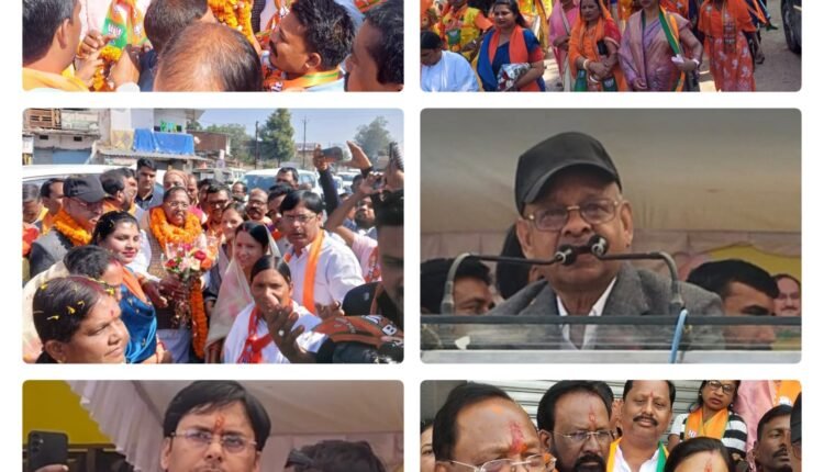 बैकुंठपुर कोरिया – पटना नगर पंचायत चुनाव अध्यक्ष प्रत्याशी गायत्री सिंह के समर्थन रैली में कोरिया जिले के पटना पहुंचे प्रदेश के कृषि मंत्री रामविचार सिंह नेताम व क्षेत्र के विधायक भईया लाल राजवाड़े बड़े और प्रभावी चेहरे के रूप में पटना नगर पंचायत अध्यक्ष प्रत्याशी गायत्री सिंह के रोड शो रैली में रहे शामिल। हजारों कार्यकर्ता,नेता और समर्थकों से भरी रैली पटना आदर्श चौक से इमली चौक सभा स्थल तक रही आयोजित। रैली पश्चात आयोजित आम सभा में उपस्थित भाजपा कोरिया के युवा जिला अध्यक्ष देवेंद्र तिवारी ने कृषि मंत्री माननीय रामविचार सिंह नेताम और क्षेत्रीय विधायक भईया लाल राजवाड़े का फूल माला से स्वागत किया । श्री तिवारी ने आमसभा के मंच से मोदी सरकार की पूरी हुई गारंटी और विष्णुदेव साय सरकार की उपलब्धियों को बताते हुए पटना नगर पंचायत क्षेत्र को भाजपा के तीसरे इंजन की सरकार के तौर पर सीधे विकास से जोड़ने का अपील किया और पटना नगर पंचायत अध्यक्ष पद की भाजपा प्रत्याशी गायत्री सिंह और सभी 15 को पार्षद प्रत्याशियों को पूर्ण बहुमत से विजयी बनाने पटना वासियों से निवेदन किया । प्रत्याशी गायत्री सिंह की समर्थन रैली के मंच से क्षेत्र के वर्तमान विधायक व पूर्व मंत्री भईया लाल राजवाड़े ने मंच पर उपस्थित प्रदेश के कृषि मंत्री रामविचार सिंह नेताम का स्वागत और उद्बोधन करते हुए कहा की हमारे कृषि मंत्री माननीय रामविचार सिंह नेताम जी राम के विचारों को आप पटना वासियों के समक्ष रखने आएं हैं जिनके शब्दों का स्मरण पटना वासियों को करना है और प्रधानमंत्री मोदी जी के उद्देश्य विकसित भारत संकल्प अभियान सहित विष्णुदेव साय सरकार के सुशासन से नगर पंचायत पटना को जोड़कर विकास के क्षेत्र में अग्रणी रखना है । आमजन को संबोधित करते हुए विधायक राजवाड़े ने कहा की कांग्रेस के घोषणा पत्र के भुलावे में पटना की जनता को नहीं आना है क्यों की केंद्र और प्रदेश में भाजपा की सरकार है और घोषणा पत्र के वादों को केंद्र की मोदी सरकार और प्रदेश की विष्णुदेव साय सरकार दोनों ही सरकारें पूरी करती आई हैं। और उसी तरह आगे भी पूरी होती रहेगी।संबोधन में विधायक राजवाड़े ने कांग्रेस के घोषणा पत्र को कभी पूरा नहीं होने वाला घोषणा पत्र बताते हुए कहा की सरकार भाजपा की है तो वादे कांग्रेस कैसे पूरा करेगी । इसलिए कांग्रेस का घोषणा पत्र औचित्यहीन है । श्री राजवाड़े ने केंद्र और प्रदेश की भाजपा सरकार के उपलब्धियों को पटनावासियों के समक्ष अवगत कराते हुए भाजपा प्रत्याशी गायत्री सिंह को पटना नगर पंचायत अध्यक्ष के रूप में विजयी बनाने समर्थन का अपील किया ।