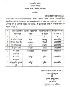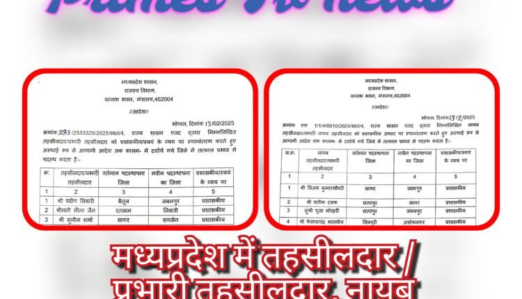 मध्यप्रदेश में तहसीलदार /प्रभारी तहसीलदार, नायब तहसीलदार के तबादले