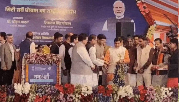 रायसेन स्थित दशहरा मैदान में आयोजित सिटी सर्वे प्रोग्राम “नक्शा” का राष्ट्रीय शुभारंभ कार्यक्रम का मुख्यमंत्री डॉ मोहन यादव, केंद्रीय कृषि मंत्री शिवराज सिंह चौहान तथा केन्द्रीय ग्रामीण विकास तथा संचार राज्यमंत्री डॉ चन्द्रशेखर पेम्मासानी द्वारा दीप प्रज्वलन कर शुभारंभ किया गया। कार्यक्रम में मत्स्य पालन एवं मछुआ कल्याण राज्यमंत्री (स्वतंत्र प्रभार) और जिले के प्रभारी मंत्री नारायण सिंह पंवार, स्वास्थ्य राज्यमंत्री नरेंद्र शिवाजी पटेल, नर्मदापुरम सांसद दर्शन सिंह चौधरी, सांची विधायक डॉ प्रभुराम चौधरी, भोजपुर विधायक सुरेंद्र पटवा, जिला पंचायत अध्यक्ष यशवंत मीणा, पूर्व मंत्री रामपाल सिंह, राकेश शर्मा सहित स्थानीय जनप्रतिनिधी और अधिकारीगण उपस्थित रहे।