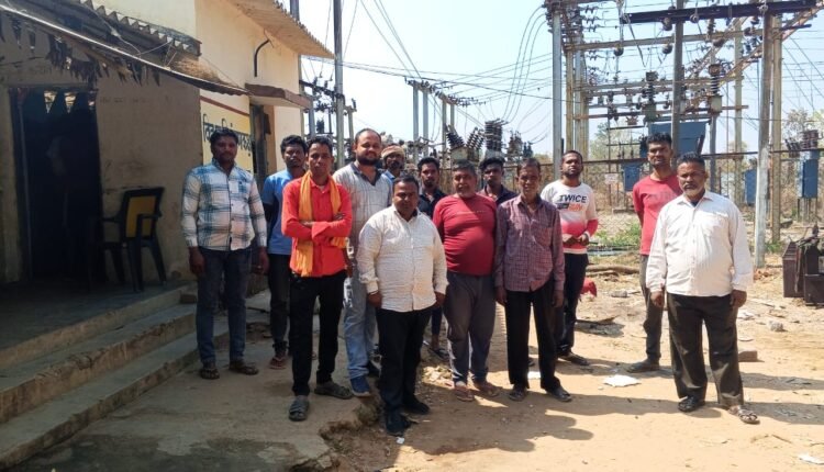 क्षेत्र में बिजली की समस्या को लेकर बी डी सी प्रत्याशी रामचंद्र विस्वास ग्रामीणों के साथ पहुँचे विधुत विभाग