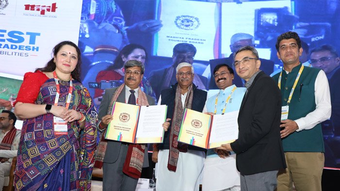 प्रदेश में पर्यटन विकास को नई गति देने के लिए मध्यप्रदेश टूरिज्म बोर्ड द्वारा ग्लोबल इन्वेस्टर्स समिट (GIS) के दौरान विभिन्न संस्थानों के साथ 6 MOU (समझौता ज्ञापन) पर हस्ताक्षर किए गए। मुख्यमंत्री डॉ. मोहन यादव, केंद्रीय पर्यटन मंत्री गजेंद्रसिंह शेखावत, पर्यटन राज्यमंत्री (स्वतंत्र प्रभार) धर्मेन्द्र भाव सिंह लोधी की मौजूदगी में हुए समझौता ज्ञापन के तहत प्रदेश में पर्यटन स्थलों पर महिला सुरक्षा, स्वच्छता, सांस्कृतिक संरक्षण, एडवेंचर टूरिज्म एवं पर्यटन सुविधाओं में विस्तार किया जाएगा। इस दौरान एक्टर पंकज त्रिपाठी, प्रमुख सचिव पर्यटन एवं संस्कृति विभाग व प्रबंध संचालक म.प्र. टूरिज्म बोर्ड शिव शेखर शुक्ला, म.प्र. राज्य पर्यटन विकास निगम के प्रबंध संचालक इलैयाराजा टी, म.प्र. टूरिज्म बोर्ड की अपर प्रबंध संचालक सुबिदिशा मुखर्जी विशेष रूप से मौजूद रहे।