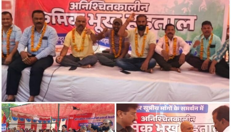 लंबित वेतन समझौता से नाराज एनएमडीसी श्रमिक संघ बैठी क्रमिक भूख हड़ताल में”