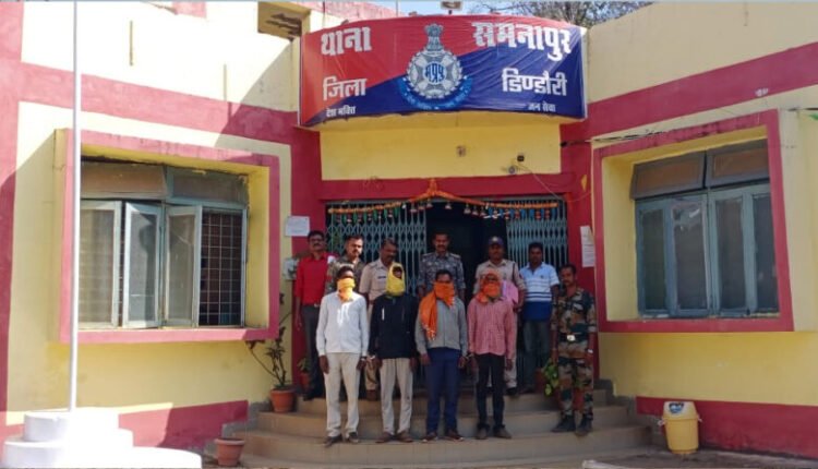 जिले अंतर्गत  समनापुर थाना में मुखबिर द्वारा सूचना प्राप्त हुई कि कुछ लोग बांधा तालाब तरफ जाने वाली रास्ता में घुघराई घाट जंगल में जंगली जानवरों का शिकार करने के लिये फांदा, सांग ,कोला लेकर जंगल में गये है , प्राप्त सूचना की तस्दीक हेतु स्वतंत्र गवाहो को लेकर थाना से टीम रवाना हुई जो मुखबिर द्वारा बताये हुए स्थान (जंगल) पर जाकर देखे तो 04 लोग जंगली जानवरो का शिकार करने के लिए नुकीली धारदार हथियार व जाल (फांदा), लाठी /डण्डा रखे हुए थे जो पुलिस को देखकर जंगल में भागने लगे जिन्हे घेराबन्दी कर पकडा गया जिनसे नाम पता पूछने पर अपना नाम (1) धर्मेन्द्र कुमार मरावी पिता महेश कुमार मरावी जाति गोंड उम्र 30 वर्ष , (2) सिकल चंद मरावी पिता स्व0 फूलसिंह मरावी , (3) राजकुमार मरावी पिता स्व0 कूप सिंह मरावी जाति गोंड उम्र 50 वर्ष , (4) अशोक कुमार मरावी पिता स्व0 हीरा सिंह मरावी जाति गोंड उम्र 40 वर्ष सभी निवासी ग्राम खम्हरिया थाना समनापुर जिला डिण्डौरी के होना बताये ।