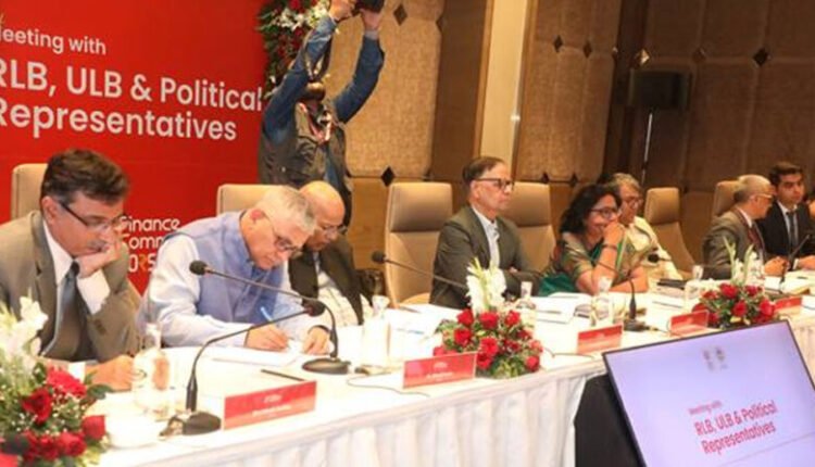 16वें केंद्रीय वित्त आयोग के साथ बुधवार 5 मार्च को ग्रामीण, स्थानीय निकाय, नगरीय स्थानीय निकाय और राजनीतिक दलों के विभिन्न प्रतिनिधियों के बैठक हुई। बैठक में वित्त आयोग के अध्यक्ष डॉ. अरविंद पनगड़िया और सदस्यों ने सभी से चर्चा की। ग्रामीण स्थानीय निकायों, नगरीय निकायों के जन-प्रतिनिधियों और राजनीतिक दलों के प्रतिनिधियों ने आयोग के समक्ष अपने विचार और सुझाव भी रखे।