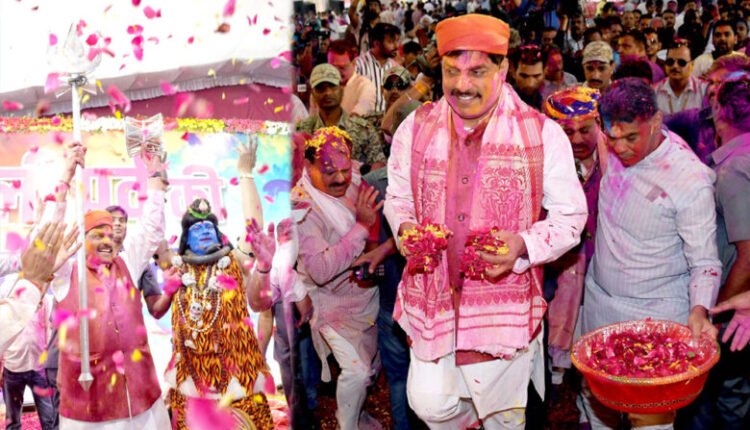 मुख्यमंत्री डॉ. यादव ने अखिल भारतीय अखाड़ा परिषद अध्यक्ष रविंद्र पूरी जी महाराज और साधु संतो पर पुष्प&वर्षा कर खेली होली