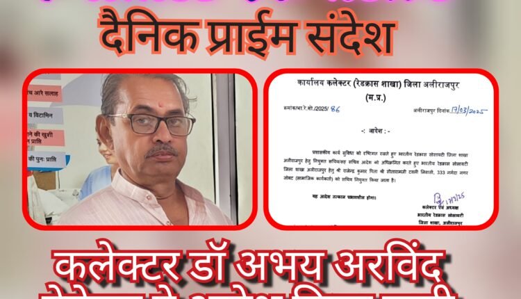 अलीराजपुर – कलेक्टर डॉ अभय अरविंद बेडेकर द्वारा भारतीय रेड क्रॉस सोसायटी जिला शाखा अलीराजपुर हेतु जोबट के वरिष्ठ समाजसेवी , गायत्री गोपाल गौशाला जोबट के अध्यक्ष राजेंद्र कुमार टवली को सचिव पद पर नियुक्त किया गया है ।