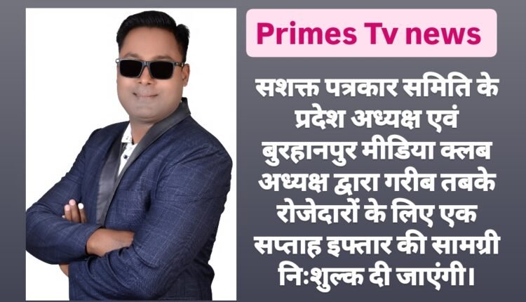 सशक्त पत्रकार समिति के प्रदेश अध्यक्ष एवं बुरहानपुर मीडिया क्लब अध्यक्ष द्वारा गरीब तबके रोजेदारों के लिए एक सप्ताह इफ्तार की सामग्री निःशुल्क दी जाएंगी।