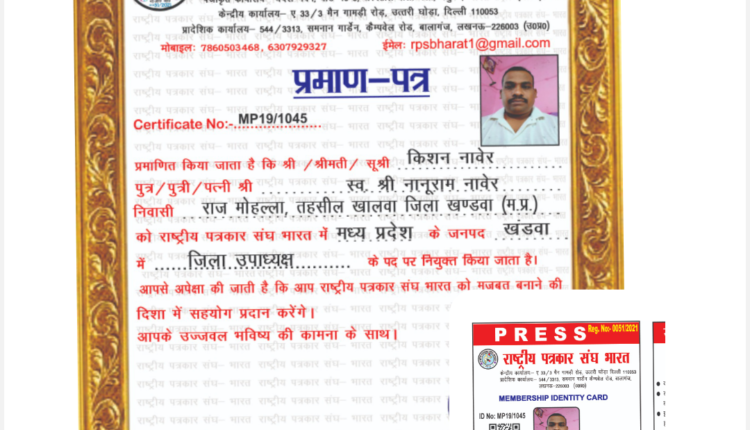 *किशन नावेद को राष्ट्रीय पत्रकार संघ जिला खंडवा के उपाध्यक्ष नियुक्त किए गयें*