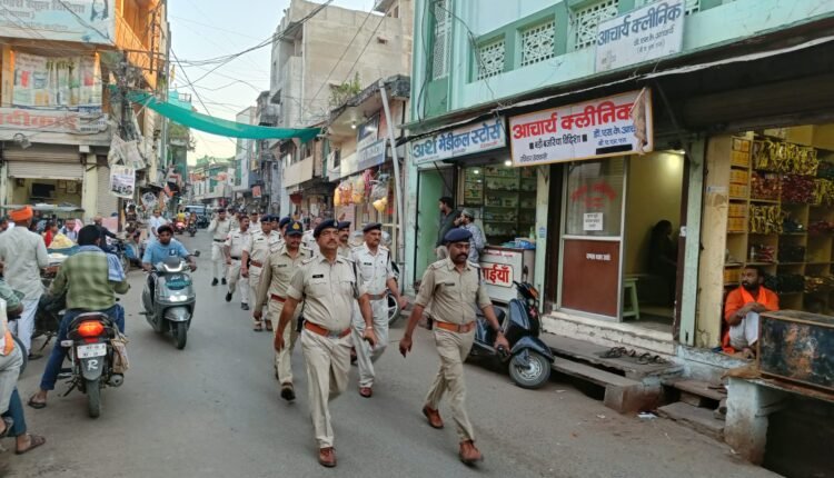 विदिशा पुलिस अधीक्षक रोहित काशवानी के निर्देशन में एवं अतिरिक्त पुलिस अधीक्षक डॉ. प्रशांत चौबे और नगर पुलिस अधीक्षक अतुल सिंह के मार्गदर्शन में आगामी त्योहारों को ध्यान में रखते हुए शांति एवं कानून व्यवस्था बनाए रखने के उद्देश्य से थाना कोतवाली एवं थाना सिविल लाइन क्षेत्र में भव्य फ्लैग मार्च निकाला गया।