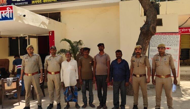 थाना संदीपनघाट पुलिस उ०नि० अनुराग सिंह मय हमराह पुलिस बल द्वारा केश नं0 1/23 धारा 147 बीएनएसएस से संबन्धित वारण्टी अभियुक्त अनवर अली पुत्र श्रीलाल मोहम्मद निवासी ग्राम रसूल पुर बदले पोस्ट बड़ेगांव थाना संदीपनघाट जनपद कौशाम्बी को गिरफ्तार किया गया। थाना मोहब्बतपुर पईसा पुलिस उ०नि० शैलेन्द्र कुमार पाण्डेय मय हमराह पुलिस बल द्वारा मु0अ0सं0 45/2010 धारा 354/504 भादवि से संबन्धित वारण्टी अभियुक्त कल्लू उर्फ मो० अजहर पुत्र शमशाद निवासी मो०पुर अनेठा जनपद कौशाम्बी को गिरफ्तार किया गया।थाना कोखराज पुलिस उ०नि० हरीश तिवारी मय हमराह पुलिस बल द्वारा मु0अ0सं0 628/18 धारा 498A/323/504/506 भादवि व % डीपी एक्ट से संबन्धित वारण्टी अभियुक्त राम हरख उर्फ पिंटू पाल पुत्र रामविपत निवासी ग्राम टिकरा थाना कोखराज जनपद कौशाम्बी को गिरफ्तार किया गया। विधिक कार्यवाही के पश्चात सातों अभियुक्तों को न्यायालय भेजा गया।