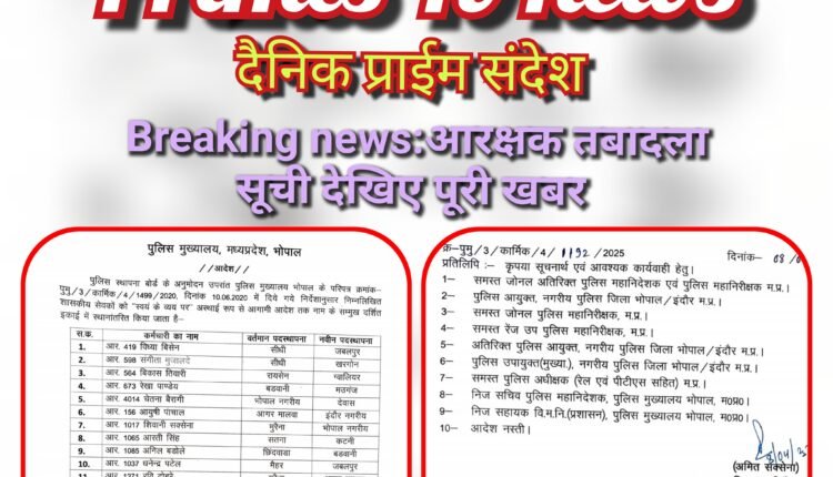 Breaking news:मध्य प्रदेश में बड़े स्तर पर हुए पुलिस आरक्षक के ट्रांसफर