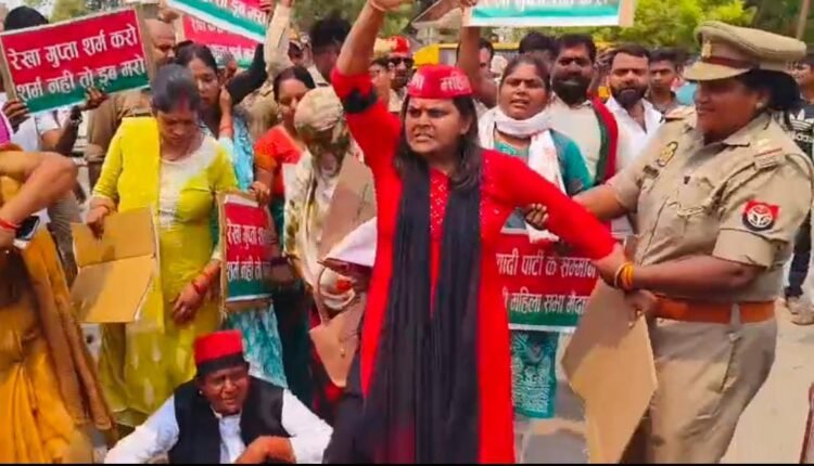 दिल्ली की सीएम रेखा गुप्ता की अभद्र टिप्पणी पर सपा महिला सभा का सड़क पर विरोध प्रदर्शन