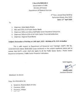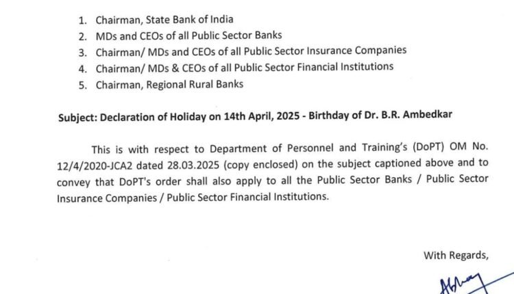 ब्रेकिंग न्यूज़ : 14 अप्रैल, 2025 को अवकाश की घोषणा – डॉ. बी.आर. अंबेडकर का जन्मदिन
