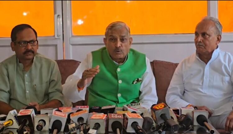 लखनऊ स्थित अपने आवास पर राज्यसभा सांसद प्रमोद तिवारी कर रहे प्रेस वार्ता मे कहा