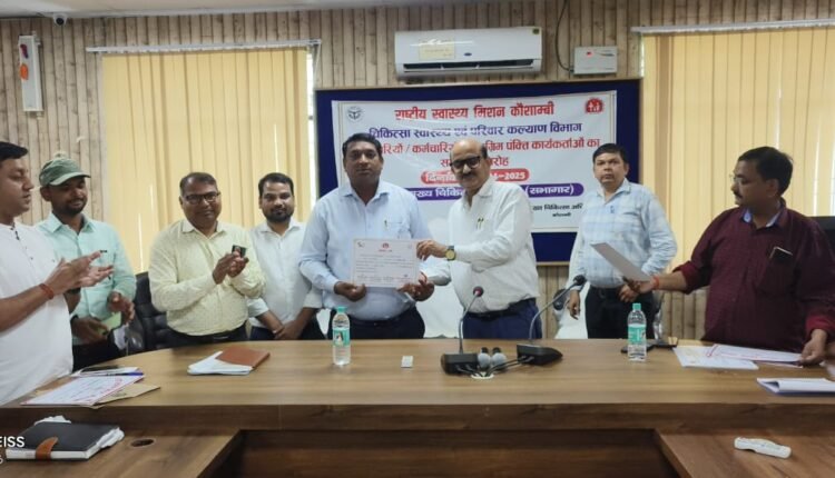 कौशाम्बी: जिला स्वास्थ्य समिति की बैठक में जिलाधिकारी के द्वारा किए गए कार्यों की समीक्षा के बाद जिलाधिकारी कौशांबी मधुसूदन हुलगी के आदेशानुसार मुख्य चिकित्सा अधिकारी के निर्देश पर तहसील मंझनपुर के अंतर्गत आने वाले तीन ब्लाकों में प्रभारी चिकित्सा अधिकारी के द्वारा बनाई गई कमेटी की समीक्षा रिपोर्ट के अंतर्गत चिकित्सा स्वास्थ्य एवं परिवार कल्याण के अंतर्गत कार्य करने वाले चिकित्सक एवं अग्रिम पंक्ति में कार्य करने वाले हेल्थ वर्करो का सम्मान समारोह आयोजित किया गया आज मुख्य चिकित्सा अधिकारी के सभागार मे आयोजित हुए इस सम्मान समारोह मुख्य अतिथि अपर मुख्य चिकित्सा अधिकारी डॉ संजय चंद्र उप मुख्य चिकित्सा अधिकारी हिन्द प्रकाश मनी ने संचारी रोग के बारे मे सभी को जागरूक किया और बचाओ के रास्ते बताये उन्होंने जिले मे मातृ मृत्यु दर पे रोक लगाने के लिये हाई रिस्क प्रिग्नेंसी के बारे मे सबको समझाया और उन गर्भवती महिलाओ को स्वास्थ्य सुविधा मुहैया कराने का निर्देश दिया|