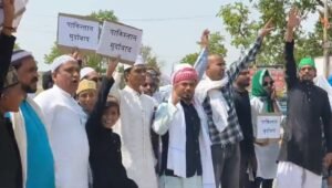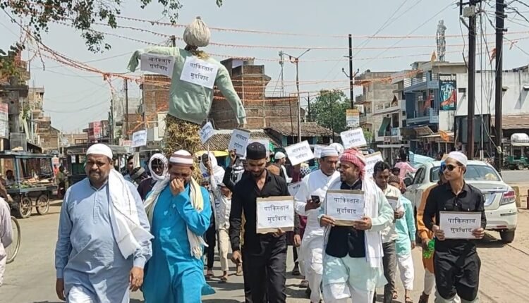 स्लग – रामानुजगंज मुस्लिम समाज ने आतंकवाद और पाकिस्तान का फुका पुतला।