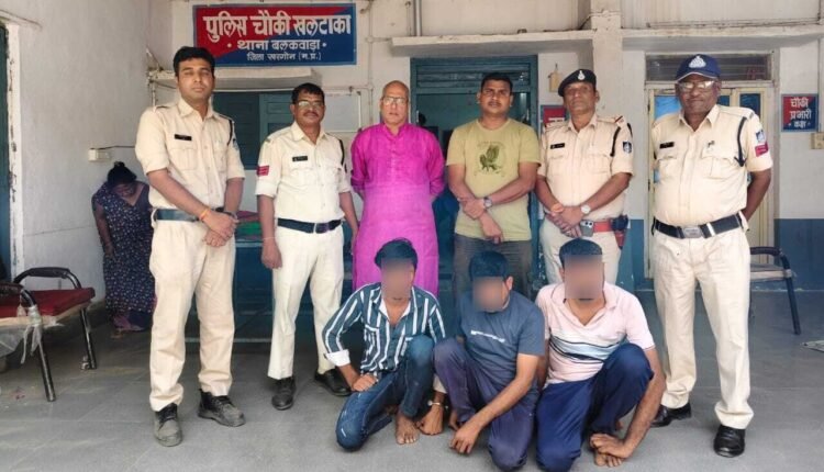 सद्दाम पिता आबिद खान उम्र 29 साल निवासी खडकवानी,अलफाज पिता कासम खान उम्र 24 साल निवासी खडकवानी,सलाउद्दीन उर्फ भय्यु पिता युसुफ खान उम्र 30 साल निवासी धरमपुरी हाल मुकाम निमरानी को गिरफ्तार गया गया।