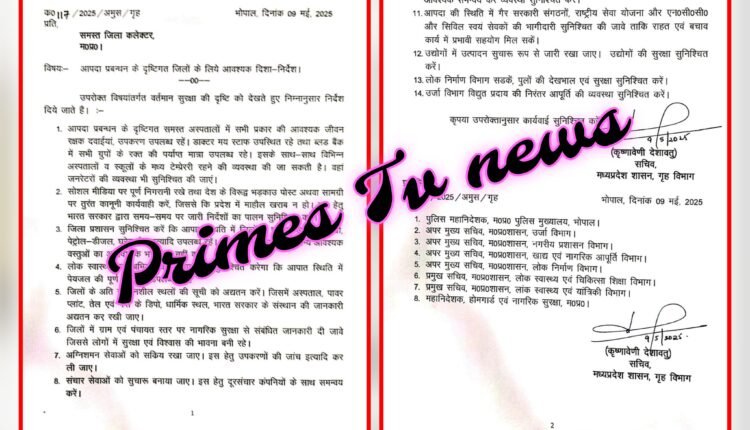 भोपाल::वर्तमान सुरक्षा की दृष्टि को देखते हुए निम्नानुसार निर्देश दिये जाते हैं।
