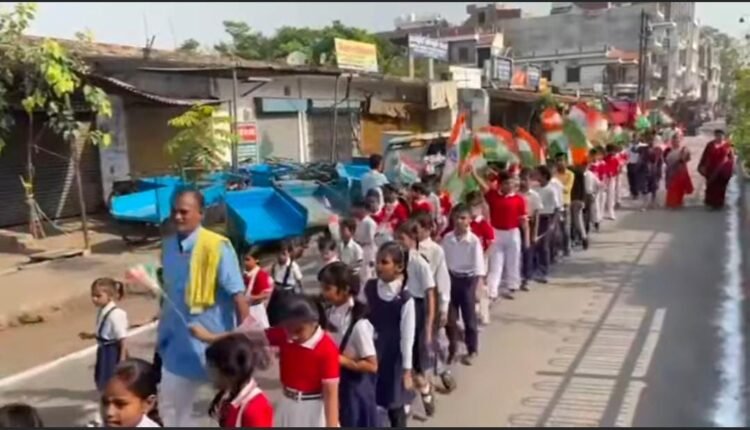 भारतीय सेना के सम्मान मे स्कूली छात्र-छात्राओं द्वारा जोर शोर से निकला गया तिरंगा यात्रा
