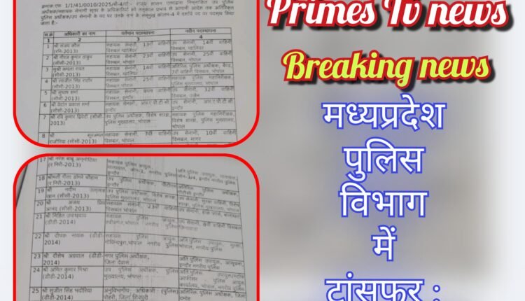 बड़ी खबर::मध्यप्रदेश पुलिस विभाग में ट्रांसफर : अतिरिक्त पुलिस अधीक्षकों के स्थानांतरण