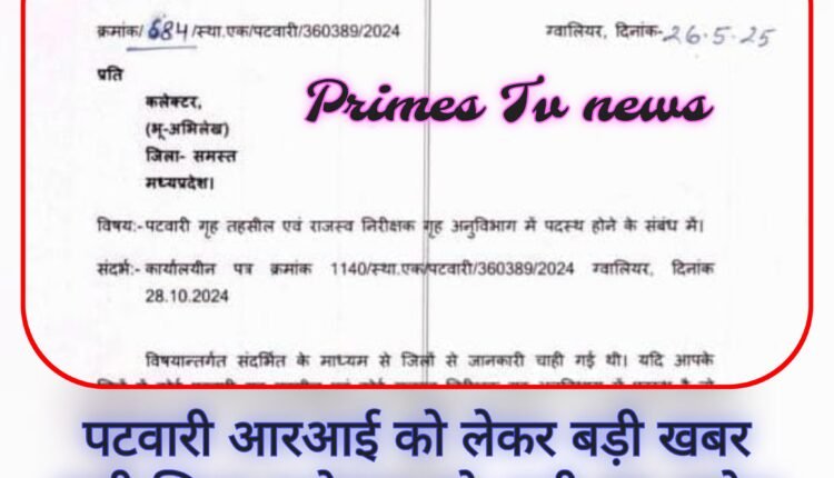 पटवारी, आरआई को लेकर बड़ी खबर, सभी जिला कलेक्टर को जारी हुए आदेश