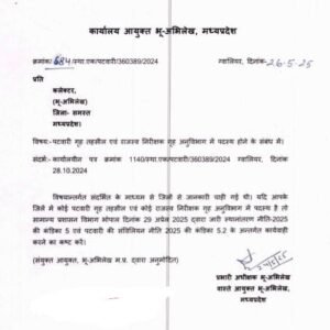 संदर्भ: कार्यालयीन पत्र क्रमांक 1140/स्था. एक पटवारी/360389/2024 ग्वालियर, दिनांक 28.10.2024