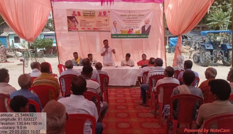 कौशाम्बी: उप कृषि निदेशक सतेन्द्र कुमार तिवारी द्वारा अवगत कराया गया कि जनपद के विकासखण्ड कड़ा के ग्राम डोरमा, निंदूरा, त्रिलोकपुर व मूरतगंज के ग्राम उमरछा, मोहनपुर, हठिया भीठा व कौशाम्बी के ग्राम बैंगवां फतेहपुर, मढी, ढेकाही में तीन पालियों में विकसित कृषि संकल्प अभियान का आयोजन किया गया, जिसमें क्षेत्र के किसानों द्वारा प्रतिभाग किया गया। यह कार्यक्रम 29 मई, 2025 से प्रारम्भ होकर 12 जून, 2025 तक निरन्तर चलेगा। इस कार्यक्रम में किसानों को कृषि विज्ञान केन्द्र के वरिष्ठ डॉ0 अजय कुमार, डॉ0 मीनाक्षी सक्सेना, डॉ0 आशीष कुमार श्रीवास्तव ने किसानों को आय में वृद्धि करने के लिए उन्नत बीज शोधन, गन्ने के साथ सह फसली खेती, मिट्टी का स्वास्थ्य एवं उपचार, संतुलित मात्रा में उर्वरक का प्रयोग, औद्यानिक फसलों का विस्तार, चारा उत्पादन तथा पशु जनित रोगों की रोकथाम और उनकी नस्लों के सुधार, मत्स्य पालन, मधुमक्खी पालन एवं ड्रिप स्प्रिंकलर सिंचाई द्वारा कम पानी से उन्नत खेती आदि के सम्बन्ध में जानकारी प्रदान किया।इस अवसर पर सतेन्द्र कुमार तिवारी उप कृषि निदेशक द्वारा किसानों को बताया गया कि जनपद में खाद एवं बीज पर्याप्त मात्रा में उपलब्ध है। किसान अपने विकासखण्ड से सम्बन्धित राजकीय कृषि बीज भण्डार पर जाकर खरीफ सत्र की फसलों के बीज प्राप्त कर सकते हैं।