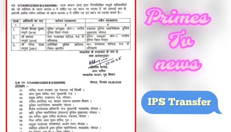 IPS Transfer MP : तीन आई पी एस की नई पदस्थापना