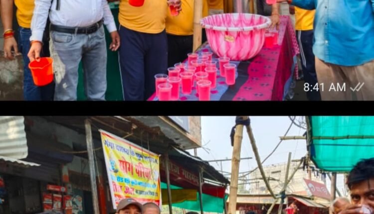 कौशाम्बी: जनपद के भरवारी नगर में योग परिवार बड़ी कुटी द्वारा रेलवे फाटक के नजदीक स्नानर्थियों व राहगीरों को शीतल शबरत का वितरण किया गया।