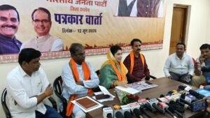 रायसेन।केंद्र की मोदी सरकार के 11 साल अमृत काल सेवा सुशासन गरीब कल्याण के लिए बेमिसाल को लेकर स्वतंत्र प्रभार राज्य मंत्री कृष्णा गौर भाजपा जिला कार्यालय रायसेन पहुंची ।यहां आयोजित प्रेस कॉन्फ्रेंस में उन्होंने केंद्र सरकार की उपलब्धियां और विकास कार्यों का जमकर बखान किया। इस अवसर पर सांची सीट के भाजपा विधायक डॉ प्रभुराम चौधरी भाजपा जिला अध्यक्ष राकेश शर्मा मीडिया प्रभारी हरि साहू समाजसेवी मनोहर मेहरा भाजपा जिला उपाध्यक्ष राकेश तोमर भाजपा नगर मंडल अध्यक्ष आदित्य जीतू शर्मा सीएल गौर जीतू ठाकुर मोहन चक्रवर्ती उपस्थित रहे।
