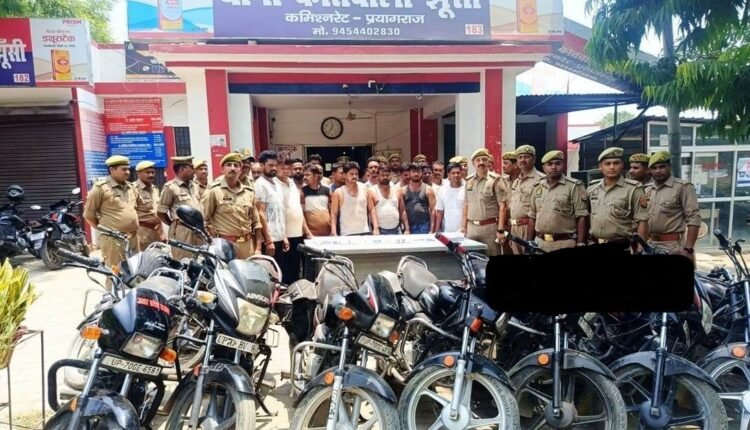 प्रयागराज: डीसीपी नगर के निर्देशन मे झूंसी थाने की पुलिस टीम ने थाना स्थानीय के पंजीकृत मु0अ0सं0-228/2025 धारा-191(2)/191(3)/190/109(1)/ 352/351(3)/288/115(2) बी0एन0एस0, 7 सी0एल0ए0 एक्ट, 3/25 आर्म्स एक्ट व 4/5 विस्फोटक पदार्थ अधि0 से सम्बन्धित 20 वांछित अभियुक्तों 01. दीपक कुमार पुत्र रामसूचित उर्फ पहाड़ी निवासी माधोपुर थाना थरवई जनपद प्रयागराज, 02. सुयोग सिंह पुत्र बजरंगी निवासी नैका महमूदाबाद थाना झूंसी जनपद प्रयागराज, 03. राजकुमार पुत्र स्व0 रामाश्रय निवासी सरायगोपाल थाना फाफामऊ जनपद प्रयागराज, 04. सुनील भारतीया पुत्र स्व0 छोटेलाल निवासी मातादीन का पुरा थाना फाफामऊ जनपद प्रयागराज, 05. आलोक कुमार सरोज पुत्र विजय शंकर सरोज निवासी नैका झूंसी थाना झूंसी जनपद प्रयागराज, 06. विनय कुमार सरोज पुत्र विजय शंकर सरोज निवासी नैका थाना झूंसी जनपद प्रयागराज, 07. आयुष कुमार उर्फ कर्नल पुत्र जगदीश नारायण निवासी सहजीपुर थाना थरवई जनपद प्रयागराज, 08. विनोद कुमार प्रजापति पुत्र जीतलाल प्रजापति निवासी पूरनतारा थाना थरवई जनपद प्रयागराज, 09. जितेन्द्र कुमार पुत्र स्व0 राजेन्द्र प्रसाद निवासी जगदीशपुर पूरे चंदा थाना थरवई जनपद प्रयागराज, 10. पृथ्वीराज यादव पुत्र संतलाल यादव निवासी मातादीन का पुरा फाफामऊ थाना फाफामऊ जनपद प्रयागराज, 11. अनुराग सिंह उर्फ मोनू पुत्र भार्गव प्रसाद निवासी महमूदाबाद थाना झूंसी जनपद प्रयागराज, 12. राजू भारतीया पुत्र मान सिंह निवासी नैका थाना झूंसी जनपद प्रयागराज, 13. विजय शंकर सरोज पुत्र स्व0 सूरजदीन मूल निवासी चक करीम उर्फ खानीपुर थाना सरायइनायत जनपद प्रयागराज हाल पता नैका थाना झूंसी जनपद प्रयागराज, 14. बजरंगी लाल पुत्र स्व0 श्याम लाल निवासी नैका थाना झूंसी जनपद प्रयागराज, 15. सुरेन्द्र पुत्र खेदूराम निवासी सहजीपुर थाना थरवई जनपद प्रयागराज, 16. रोहित कुमार पुत्र रामनाथ निवासी सहजीपुर थाना थरवई जनपद प्रयागराज, 17. दिलीप कुमार पुत्र स्व0 राम प्रसाद निवासी केवटलिया थाना थरवई जनपद प्रयागराज, 18. वीरेन्द्र कुमार पुत्र ओम प्रकाश निवासी 48 अल्लापुर तिलकनगर थाना जार्जटाउन जनपद प्रयागराज, 19. बबलू सरोज पुत्र रामकुमार निवासी डूडीबाग थाना थरवई जनपद प्रयागराज व 20. नीरज कुमार पुत्र रमेश चन्द्र भारतीय निवासी नैका महीन थाना झूंसी जनपद प्रयागराज को मुखबिर की सूचना पर आज दिनांक 12.06.2025 को श्यामलाल सामाजिक सेवा संस्थान गेस्ट हाउस गंगादीप कॉलोनी थाना क्षेत्र झूंसी से गिरफ्तार किया गया व उनके कब्जे से 01 अवैध पिस्टल .32 बोर व 02 अवैध जिन्दा कारतूस .32 बोर, 04 अवैध तमंचा .315 बोर व 12 अवैध जिन्दा कारतूस .315 बोर व 05 खोखा कारतूस .315 बोर, 05 अवैध देशी जिन्दा बम व 10 मोटरसाइकिल बरामद की गयी । बरामद उक्त मोटरसाइकिलों को अन्तर्गत धारा 207 एम0वी0 एक्ट में सीज किया गया । नियमानु