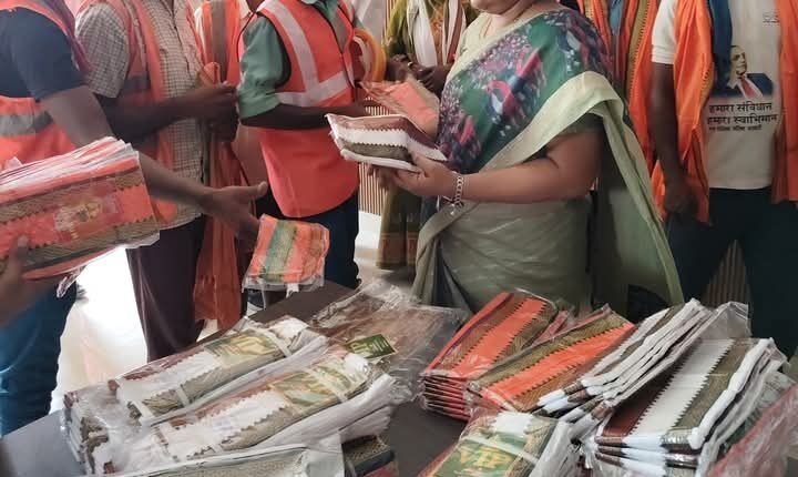 नगर अध्यक्ष कविता पासी ने कहा कि हीटवेव और तेज धूप से बचाव हेतु खुले वातावरण में कार्य कर रहें स्वच्छताकर्मियों एवं सफाई नायकों की सेहत और सुरक्षा का ध्यान रखते हुए सभी को अंगवस्त्र (गमछा) वितरण किया। इस दौरान अधिशाषी अधिकारी राम सिंह ,लेखा लिपिक बब्लू गौतम, लल्लू प्रसाद, दीपक, भाजपा जिला कोषाध्यक्ष अशोक केशरवानी, सभासद प्रतिनिधि तुषार केशरवानी सहित लोग उपस्थित रहें।