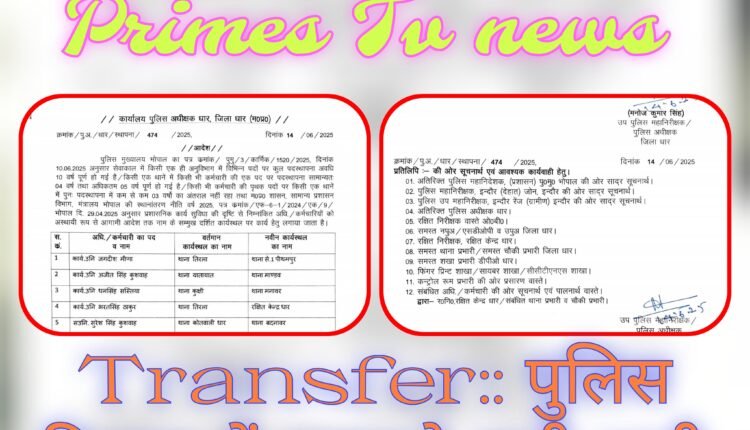 भोपाल::पुलिस मुख्यालय भोपाल का पत्र कमांक / पुमु/3/कार्मिक/1520/2025, दिनांक 10.06.2025 अनुसार सेवाकाल में किसी एक ही अनुविभाग में विभिन्न पदों पर कुल पदस्थापना अवधि 10 वर्ष पूर्ण हो गई है/ किसी एक थानें में किसी भी कर्मचारी की एक पद पर पदस्थापना सामान्यतः 04 वर्ष तथा अधिकतम 05 वर्ष पूर्ण हो गई है/ किसी भी कर्मचारी की पृथक पदों पर किसी एक थानें में पुनः पदस्थापना में कम से कम 03 वर्षों का अंतराल नहीं रहा तथा म०प्र० शासन, सामान्य प्रशासन विभाग, मंत्रालय भोपाल की स्थानांतरण नीति वर्ष 2025, पत्र कमांक/एफ-6-1/2024/एक/9/भोपाल दि. 29.04.2025 अनुसार प्रशासनिक कार्य सुविधा की दृष्टि से निम्नांकित अधि. / कर्मचारियों को अस्थायी रूप से आगामी आदेश तक नाम के सम्मुख दर्शित कार्यस्थल पर कार्य हेतु लगाया जाता है।