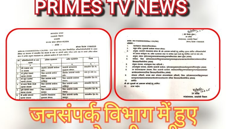 PRO Transfer= जिला जनसंपर्क अधिकारियों के स्थानांतरण देखिए इन जिलों में हुआ जनसंपर्क अधिकारियों के स्थानांतरण देखिए सूची भोपालमध्यप्रदेश By Prime Sandesh Last updated Jun 18, 2025 0 397 Share PRO Transfer= जिला जनसंपर्क अधिकारियों के स्थानांतरण देखिए इन जिलों में हुआ जनसंपर्क अधिकारियों के स्थानांतरण देखिए सूची Join Primes Tv WhatsApp Group / Channel: +918109571743 0 397 Share