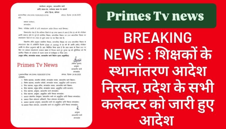 Breaking News : शिक्षकों के स्थानांतरण आदेश निरस्त, प्रदेश के सभी कलेक्टर को जारी हुए आदेश