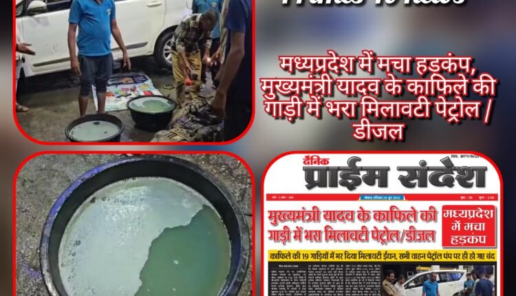 मध्यप्रदेश में मचा हड़कंप, मुख्यमंत्री यादव के काफिले की गाड़ी में भरा मिलावटी पेट्रोल / डीजल