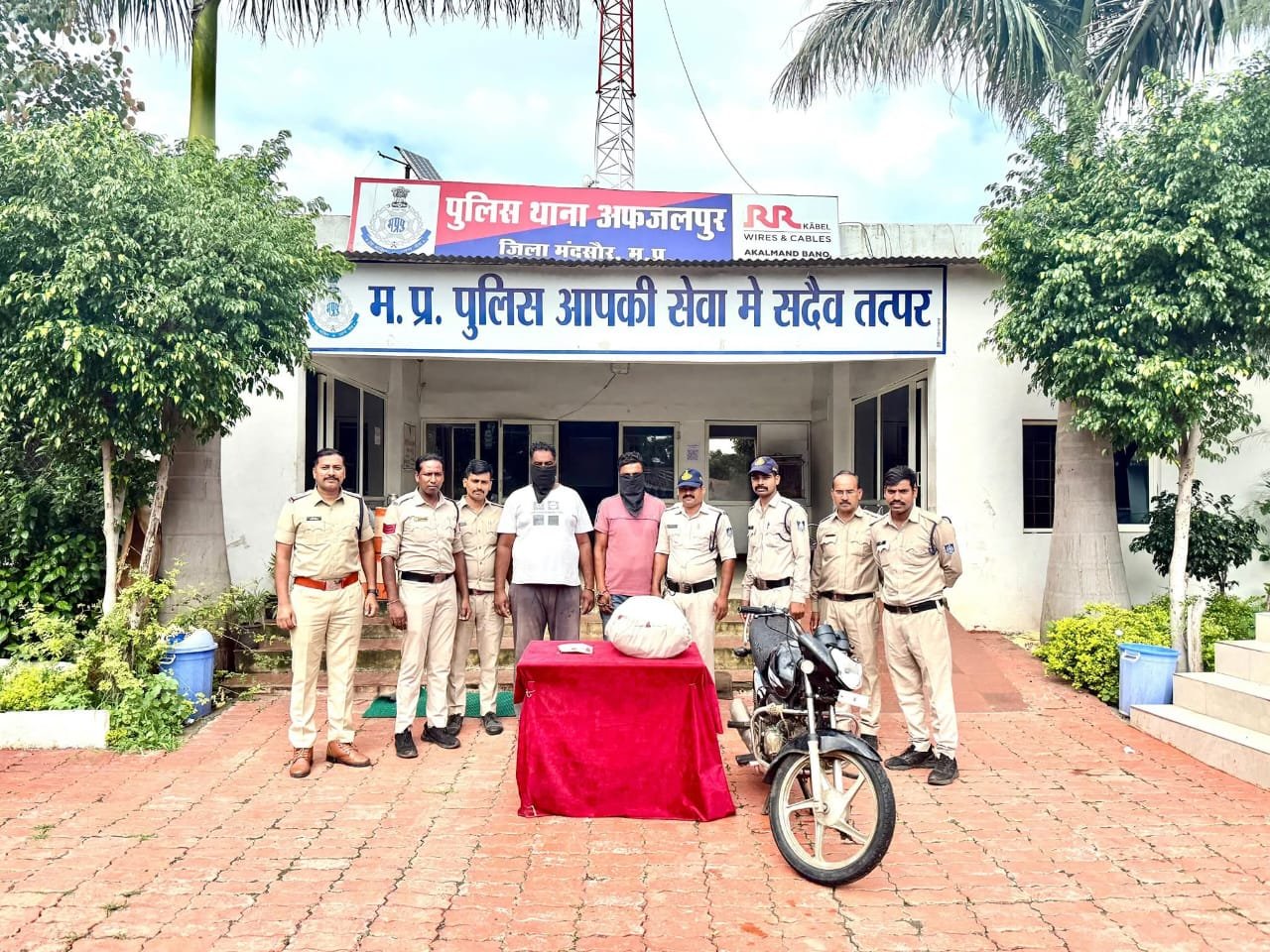 मंदसौर पुलिस थाना क्षेत्र अफजलपुरा पुलिस नें 2 तस्करों से 75 ग्राम एमड़ीएमए 7 लाख और 5 किलों 900 ग्राम डोडा चूरा किया जब्त
