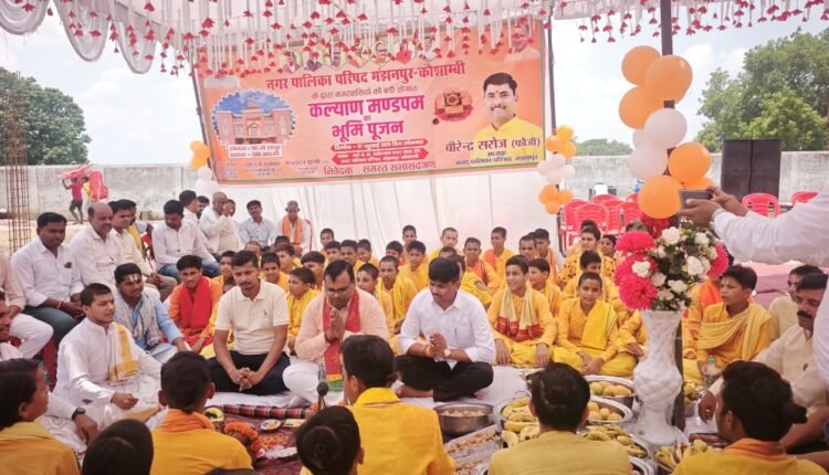 कौशाम्बी। मंझनपुर नगर पालिका अध्यक्ष बीरेंद्र सरोज(फौजी) ने सोमवार को सीएम योगी के ड्रीम प्रोजेक्ट कल्याण मण्डपम की नींव रखी है। वेद पाठी ब्राह्मणों के वैदिक मंत्रोच्चार के बीच भाजपा जिलाध्यक्ष व नगर पालिका अध्यक्ष ने भूमि पूजन कर शिलान्यास किया है। साढ़े पांच करोड़ की लागत से बनने वाला बहु मंजिला भवन आधुनिक सुविधाओं से लैस होगा। भवन निर्माण से धार्मिक व शादी विवाह कार्यक्रम में नगर पालिका के लोगों को काफी सहूलियत मिलेगी।