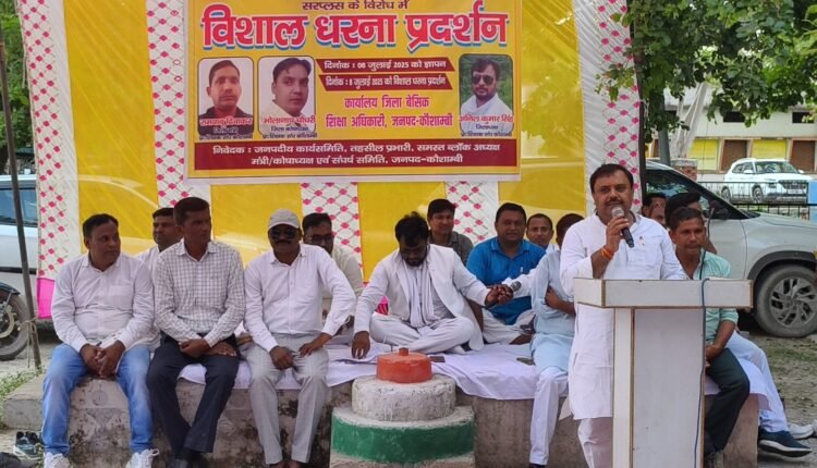कौशाम्बी: विद्यालय पेयरिंग और प्रधानाध्यापक पद सरप्लस के विरोध में जिलाध्यक्ष अनिल सिंह के नेतृत्व में प्राथमिक शिक्षक संघ जनपद कौशाम्बी ने जिला बेसिक शिक्षा अधिकारी कौशाम्बी के कार्यालय पर विशाल धरना प्रदर्शन कर मुख्यमंत्री उत्तर प्रदेश सरकार को संबोधित ज्ञापन जिलाधिकारी कौशाम्बी को सौंपा।