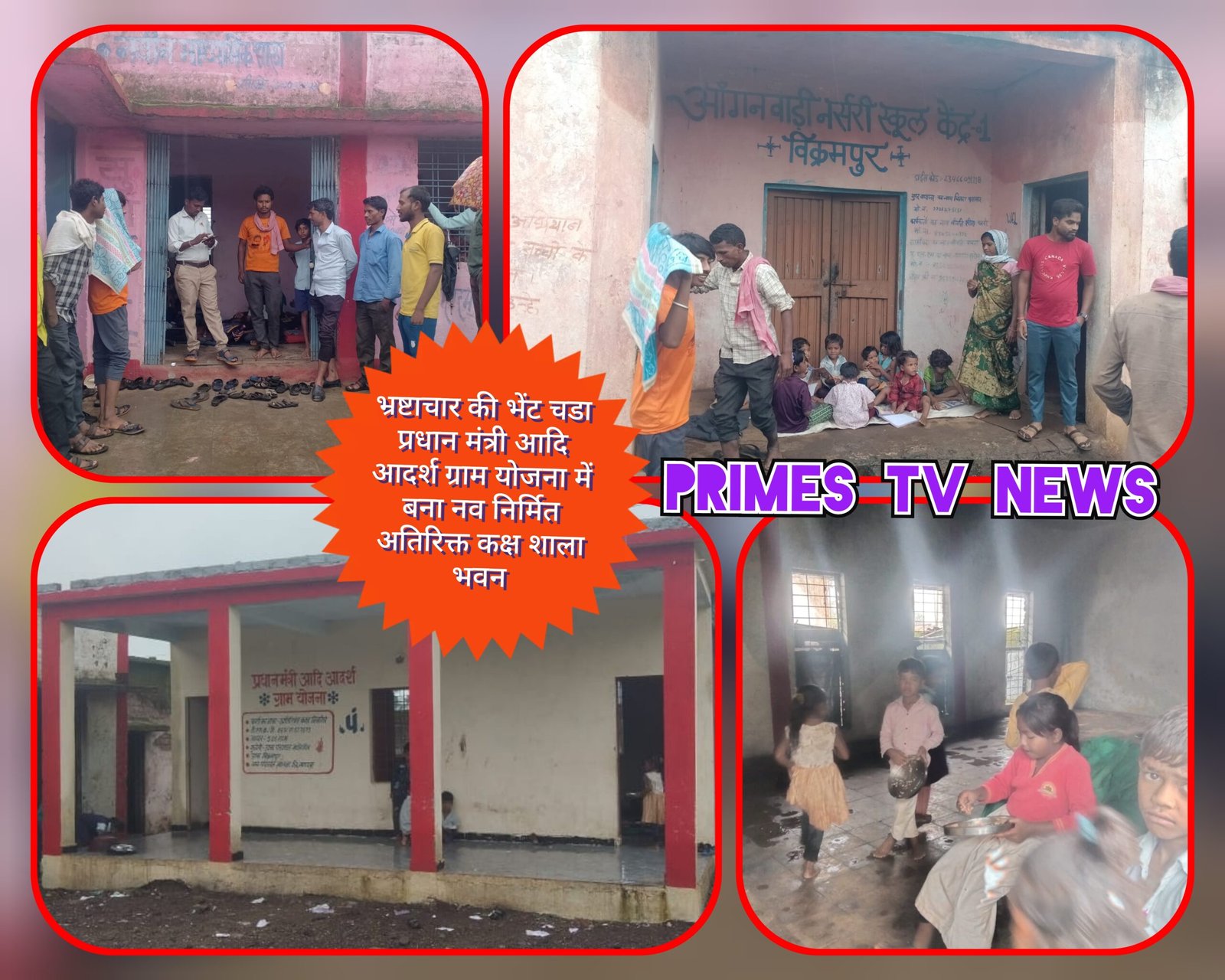 भ्रष्टाचार की भेंट चडा प्रधान मंत्री आदि आदर्श ग्राम योजना में बना नव निर्मित अतिरिक्त कक्ष शाला भवन
