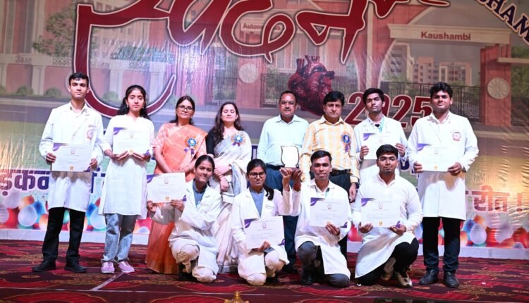 कौशांबी: स्वशासी राज्य चिकित्सा महाविद्यालय, कौशाम्बी में वार्षिक महोत्सव ’’स्पंदन 2025’’ का भव्य आयोजन किया गया। कार्यक्रम का सुभारम्भ प्रधानाचार्य डा0 हरिओम कुमार सिंह के द्वारा दीप प्रज्वलित कर किया गया एवं बतौर अतिथि दिपिका मधुसूदन हुल्गी एवं दीपक कुमार जायसवाल (मुख्य न्यायिक मजिस्ट्रेट) डा0 एस0एन0 सिंह प्रबन्धक एवं डा0 विनोद गोढ़ (चन्द्रशेखर ग्रुप संस्थान) द्वारा प्रतिभाग किया गया।प्रधानाचार्य ने कहा कि इस कार्यक्रम के अन्तर्गत विविध सांस्कृतिक प्रस्तुतियां, शैक्षणिक प्रतियोगितायें, स्वास्थ्य से सम्बन्धित जन जागरूकता सत्र एवं रचनात्मक कार्यक्रम आयोजित एवं उनका उद्देश्य छात्रों में रचनात्मक, नेतृत्व और सौहार्द को बढ़ावा देना है।