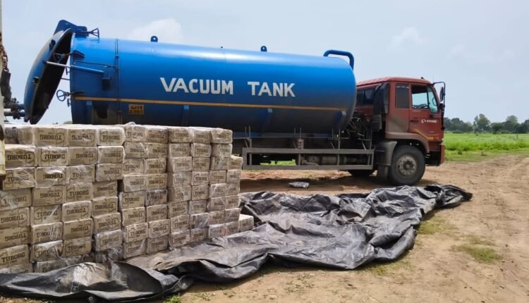पुलिस अधीक्षक मंदसौर के निर्देश पर जिले में चलाए जा रहे अवैध नशे के कारोबार और अवैध शराब के परिवहन पर कार्यवाही को लेकर को लेकर अंतराज्यीय अवैध शराब परिवहन करने वालो पर मंदसौर जिले के दलौदा पुलिस चौकी कचनारा के द्वारा की गई कार्यवाही में वेक्युम टेंकर में योजनाबद्ध तरीके से अवैध शराब का परिवहन कर किए जा रहे जा रहे परिवहन को लेकर पुलिस के द्वारा चेकिंग अभियान के दौरान प्रभावी कार्यवाही के दौरान आरोपी के कब्जे वाले वेक्युम टेंकर से अंग्रेजी शराब बीयर टू बोर्ग कम्पनी की कुल 415 पेटिया (कुल 4980 बल्क लीटर) जिनकी कुल कीमत 14 लाख 44 हजार, 200 /- रुपये आंकी गई अवैध शराब जप्त करने में सफलता मिली आरोपी को गिरफ्तार कर प्रकरण पंजीबद्ध किया जाकर टैंकर जब्त किया गया।