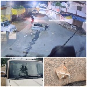 “बाइक सवार ने पत्थर से हमला कर फोड़ा गाड़ी फ्रंट ग्लॉस