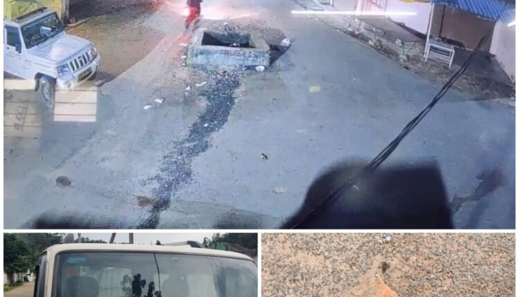 गीदम नगर में असमाजिक तत्वों का आतंक, आधी रात पत्रकारों की गाड़ी पर पत्थर से हमला” “बाइक सवार ने पत्थर से हमला कर फोड़ा गाड़ी फ्रंट ग्लॉस