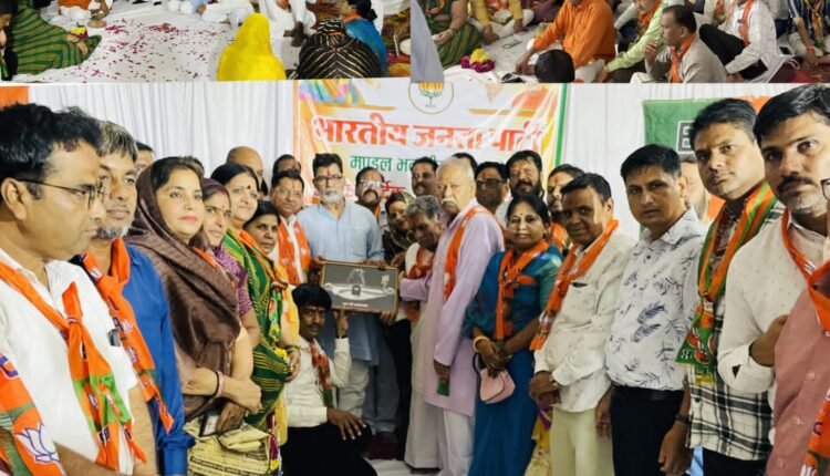 विगत दिवस भाजपा नगर मंडल भवानीमंडी की बैठक जिला अध्यक्ष हर्षवर्धन शर्मा एवं क्षेत्र के विधायक कालूराम मेघवाल के मुख्य आतिथ्य में गणेश मंदिर परिसर में आयोजित हुईl बैठक का शुभारंभ अतिथियों द्वारा पंडित दीनदयाल जी उपाध्याय एवं डॉ श्यामा प्रसाद जी मुखर्जी की छवि पर माल्यार्पण एवं दीप प्रज्जवलित कर किया गया। उसके बाद परंपरानुसार सभी अतिथियों का पुष्पमाला एवं भाजपा का दुपट्टा ओढ़ाकर सम्मान किया गया।