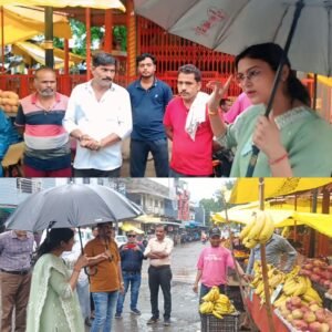 झालावाड़ जिले के सभी क्षेत्रों में लगातार हो रही बारिश के चलते अतिवृष्टि की स्थिती उत्पन्न होनें के मद्दे नजर प्रदेश शासन के निर्देशों पर जिले का पूरा प्रशासन ही अलर्ट मोड़ पर नजर आ रहा है वहीं जिला कलेक्टर द्वारा भी अतिवृष्टि और जलभराव आदि को लेकर आमजन एवं एवं प्रशासन के लिये निर्देश जारी किये गये जिसको लेकर भवानमण्ड़ी उपखण्ड़ अधिकारी श्रद्वा गोमें के द्वारा नगरपालिका क्षेत्र में सुरक्षा व्यवस्था आदि को लेकर दल के साथ हो रही बरसात में छाता लेकर औचक निरिक्षण पर निकला गया तथा नगर में जलभराव होनें वाली जगहो पर निरिक्षणकर स्थिती से निपटनें के लिये नगरपालिका को निर्देश दिये गये। वहीं नगर निरिक्षण के दौरान सब्जीमण्ड़ी में हो रहे अतिक्रमण को लेकर संबंधित विभागो नगरपालिका एवं पुलिस विभाग को सख्त कार्यवाही करनें के आदेश देते हुए उन्हें तुरंत प्रभाव से चिहित जगहों पर स्थान्तरित करनें के लिये कहा गया जिससे कि यातायात व्यवस्था सुचारु होकर आमजन को कोई परेशानी ना होने पाए। बड़े वाहनों के कारण शहरी क्षेत्र में यातायात व्यवस्था को लेकर बस स्टैण्ड़ क्षेत्र का भी औचक निरिक्षण किया गया और बस ड्राइवरों को शहरी क्षेत्र में हर 500 मीटर अथवा चौराहों पर बस खड़ी ना करने निर्धारित बस स्टॉप पर ही बसों को रोकने के लिये कहा गया जिससे कि यातायात प्रभावित ना होने पाए।